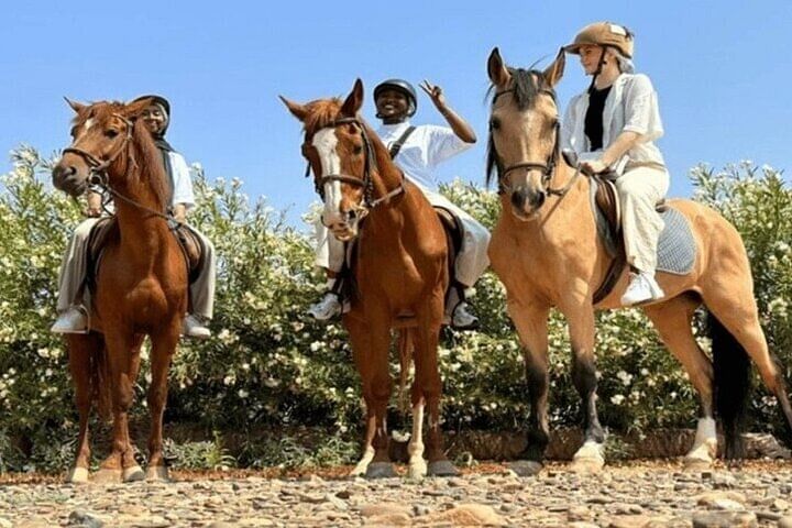 More than just a horseback ride, this immersive tour invites you to discover the tranquil beauty of the Palmeraie oasis. Ride beneath swaying palm trees with panoramic views of the majestic Atlas Mountains. Begin your experience at a charming eco-lodge, where you'll be welcomed with traditional Moroccan mint tea.