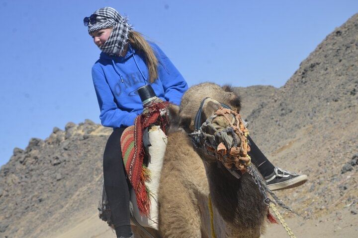 Immerse on a thrilling 2-hour camel ride through the vast desert landscape of Sharm El Sheikh. Feel the gentle sway of the camel as you journey across the golden sands, with stunning views of the surrounding mountains and desert scenery.