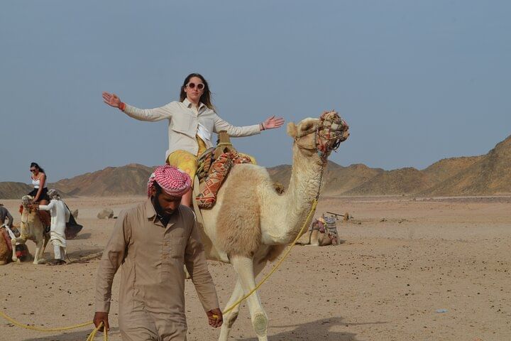 This isn’t just a quick camel ride — it’s an immersive journey into Egypt’s timeless desert heritage. Unlike short photo-stop tours, this authentic experience lets you truly connect with Bedouin traditions as you ride across rolling desert dunes and take in the peaceful beauty of the landscape from the most iconic seat imaginable — atop a camel.