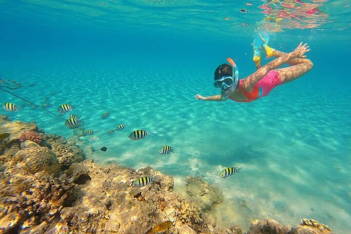 Then, dive into the crystal-clear waters for a guided snorkeling session and experience the underwater world up close. Swim among tropical fish and explore the thriving coral gardens in one of Egypt’s top snorkeling destinations.