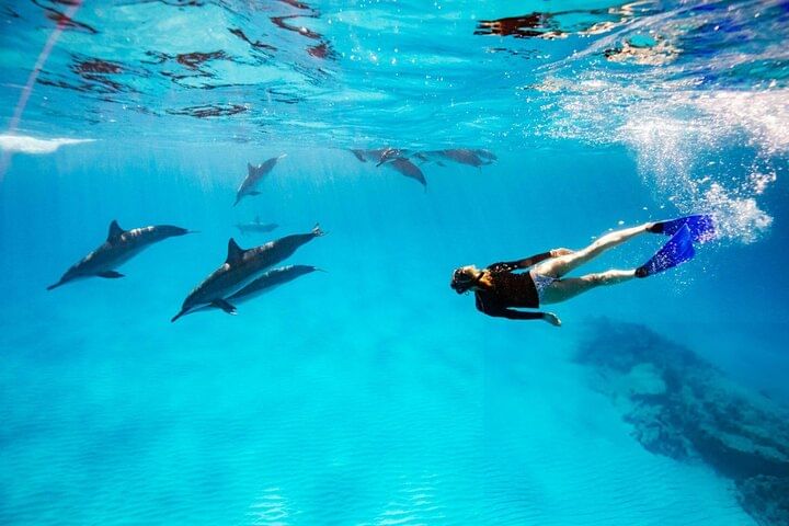 Dive into the underwater wonders of the Red Sea as you snorkel at several vibrant coral reef sites teeming with colorful marine life, all under the care of a friendly and professional crew. With a little luck, you may even get the rare chance to swim near wild dolphins—an extraordinary experience