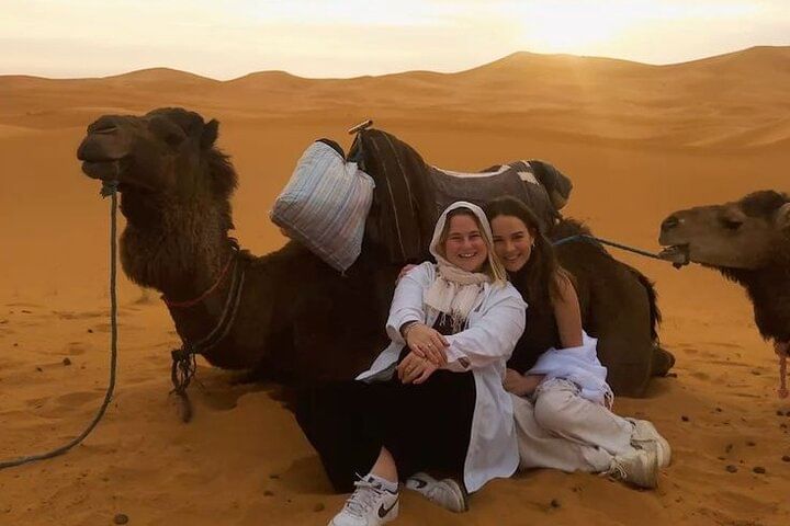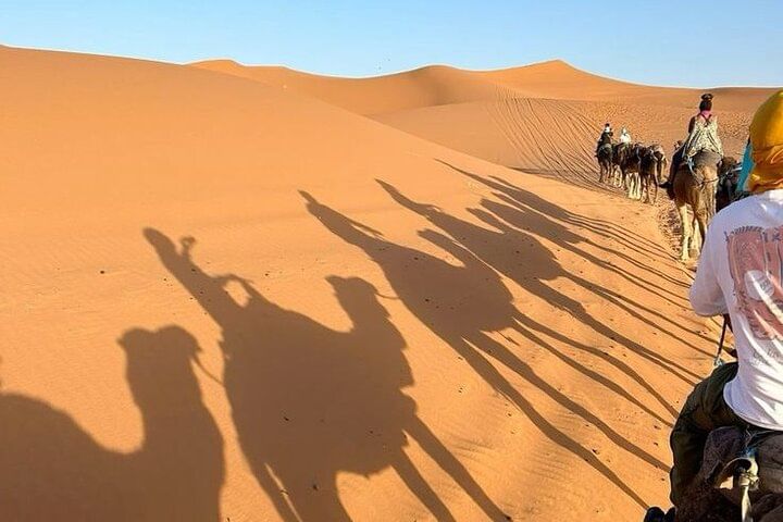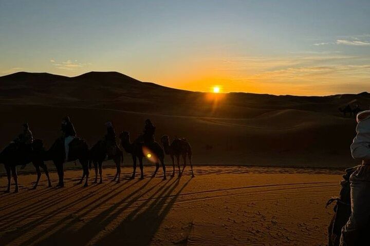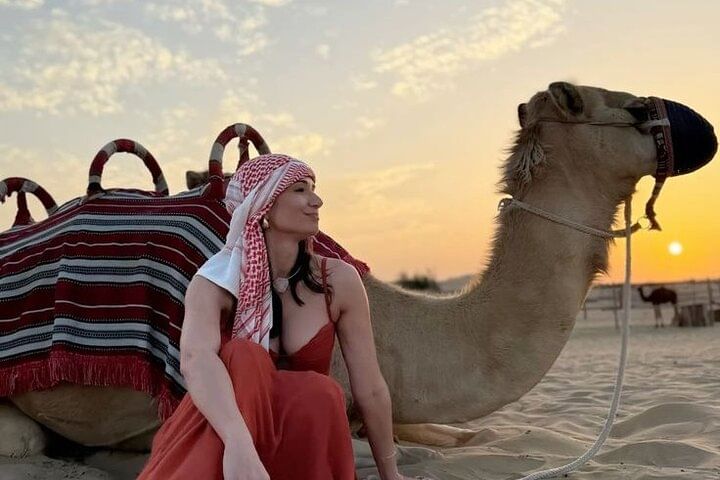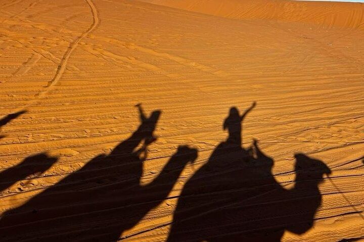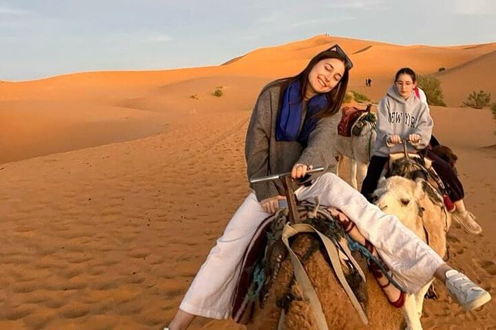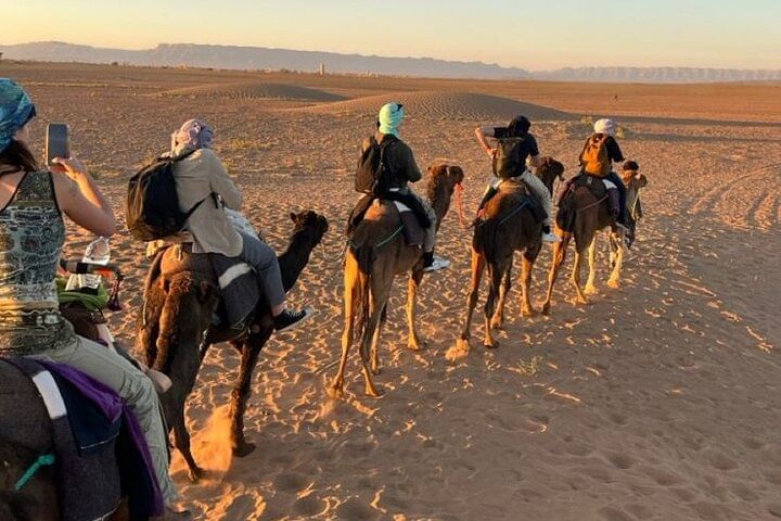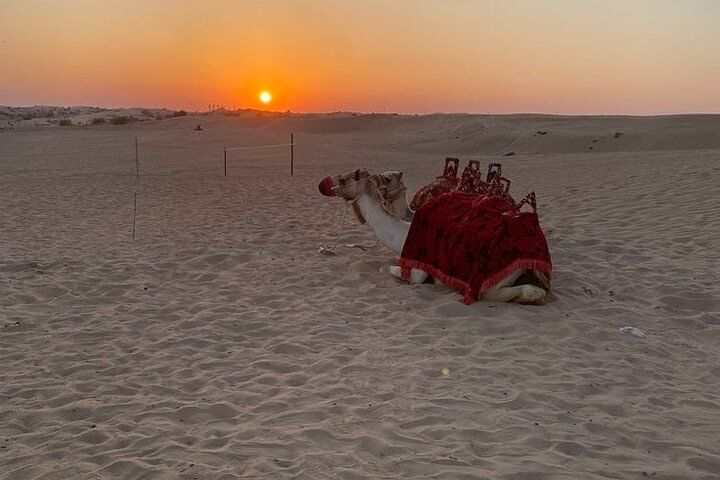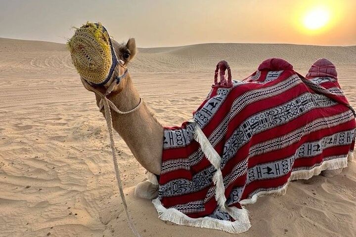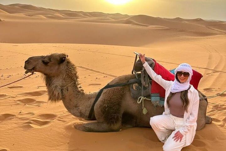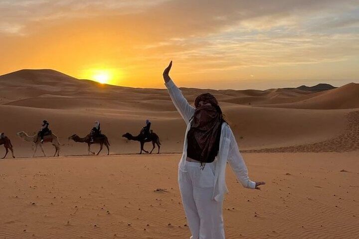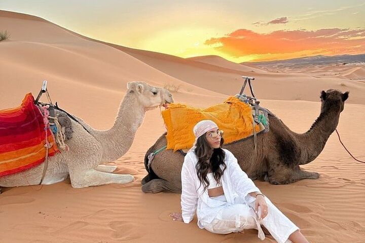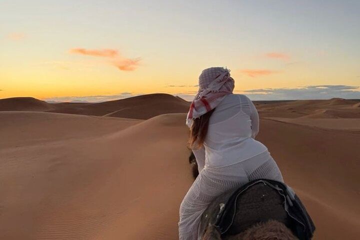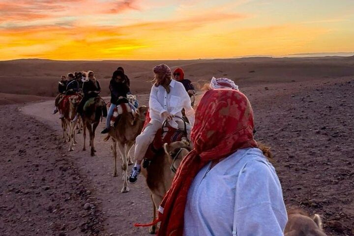 Experience the tranquil beauty of Agadir’s desert at golden hour with a peaceful two-hour camel trek along serene desert trails. Watch as the landscape glows in warm, radiant hues—an unforgettable moment of natural wonder.