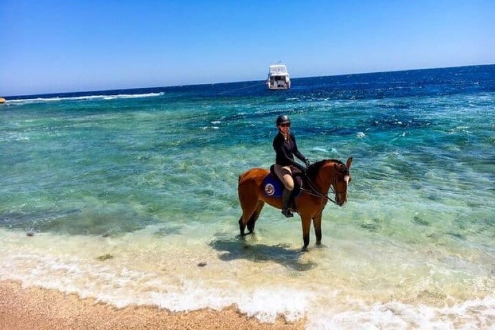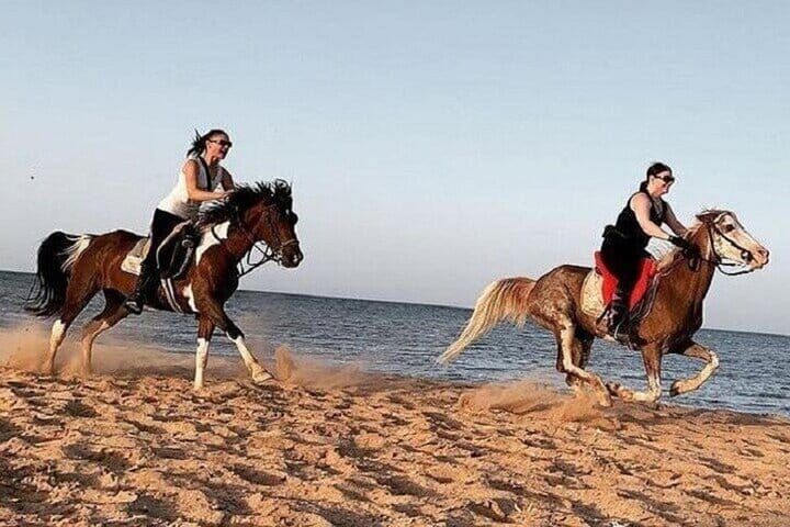 Enjoy a hassle-free hotel pick-up and drop-off in an air-conditioned vehicle. Your adventure begins with up to 3 hours of horseback riding, starting in the desert where you’ll ride through the vast dunes. Then, experience the beauty of the Red Sea as you ride along the beach, taking in the peaceful surroundings.