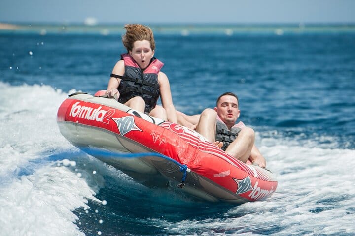 Ready for a thrill? Get your adrenaline fix with exciting banana boat and sofa boat rides, adding extra fun to your day in the sea and sun.
