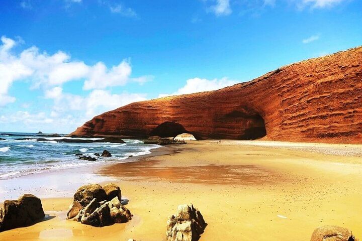 Step away from the usual tourist trail and experience the breathtaking beauty of Morocco’s Atlantic coast on this full-day adventure. Visit three stunning destinations in one unforgettable journey: Tifnit, a peaceful fishing village known for its rugged cliffs and authentic charm; the Massa River Reserve, a haven for birdwatchers and wildlife enthusiasts; and Legzira Beach, famous for its towering red rock arches and dramatic ocean views.
