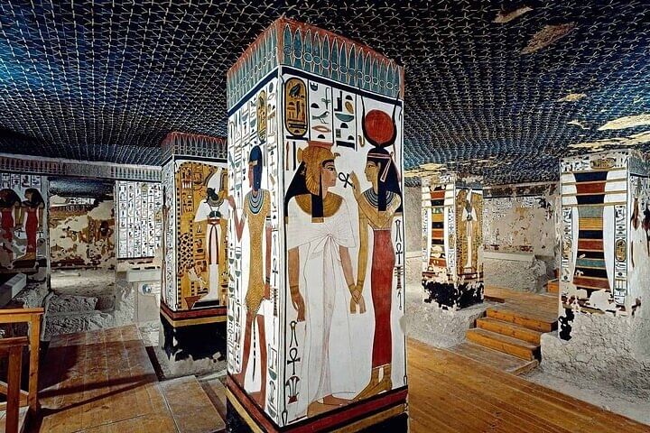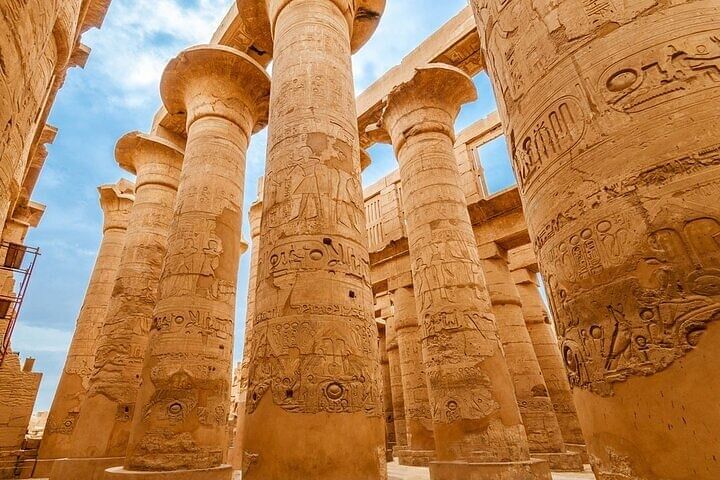 Start your adventure with a visit to the impressive Temple of Karnak, where you’ll explore towering columns and detailed hieroglyphics. Then, discover the grandeur of the Temple of Hatshepsut, dedicated to one of Egypt’s most powerful female pharaohs. Next, head to the Valley of the Kings, home to the tombs of legendary rulers like Tutankhamun and Ramses VI, and explore the intricate burial chambers.