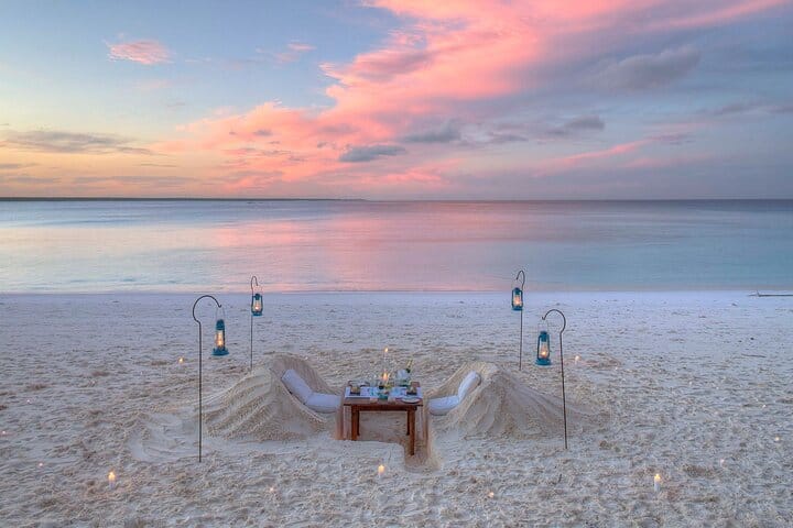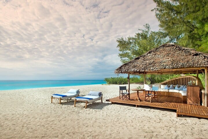 The waters surrounding Mnemba Island are breathtaking, with coral reefs and underwater plants creating a thriving barrier reef ecosystem. This vibrant marine environment is home to a diverse array of colorful fish and other fascinating marine creatures.