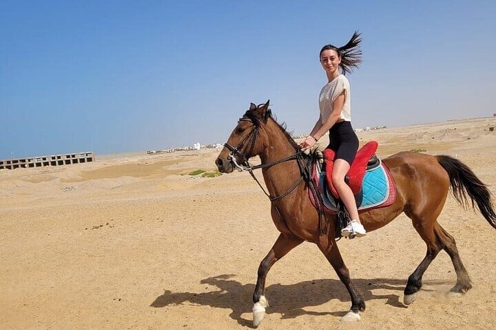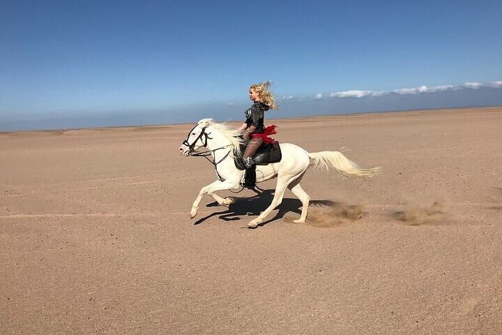 Discover the breathtaking desert landscapes of Marsa Alam on a one-hour horseback riding adventure. With hotel transfers for added convenience, this accessible excursion allows you to take in the stunning scenery, no matter your riding experience