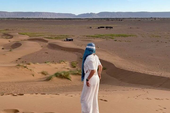 Continue your adventure through the lush Draa Valley, visiting traditional Berber villages before reaching Zagora. Experience a memorable camel ride over golden desert dunes and, depending on the season, enjoy a spectacular desert sunset.