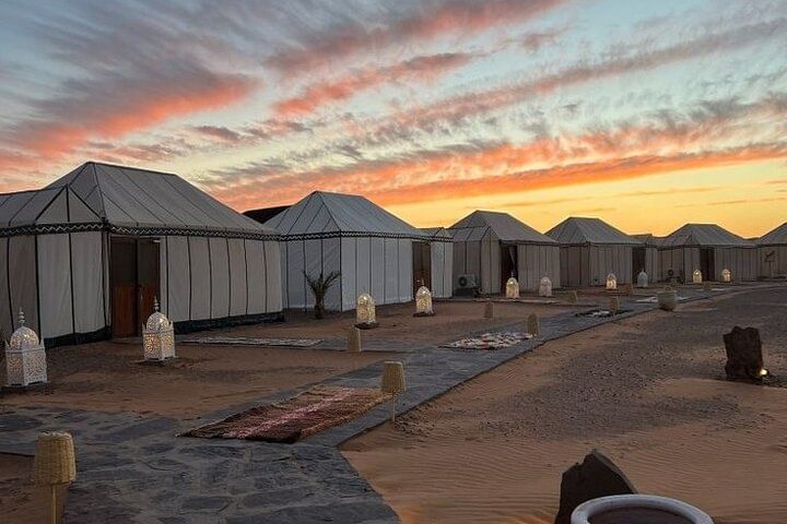 Conclude your day with a serene evening at a luxury desert camp, savoring refreshing mint tea, a delicious Moroccan dinner, and unforgettable stargazing—before a comfortable return to Marrakech. This tour offers the perfect balance of adventure, culture, and comfort in one unforgettable day.