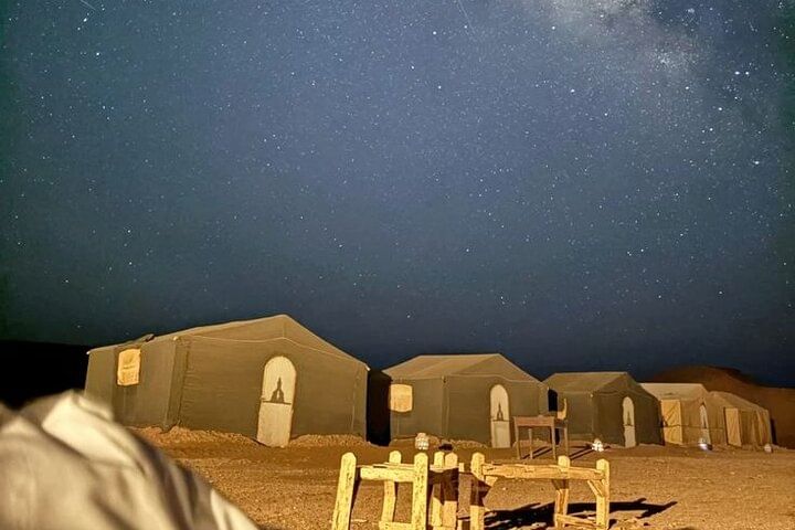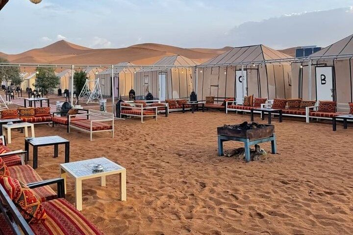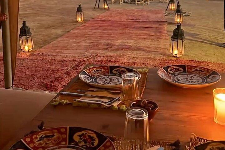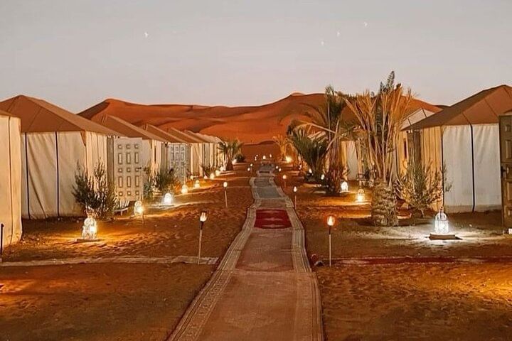 Unwind with traditional mint tea, savor a delicious Moroccan dinner under the stars, and enjoy captivating storytelling around the campfire. Rise early to witness a serene desert sunrise, enjoy a fresh Berber breakfast, then journey back to Marrakech—taking home unforgettable memories of a tailor-made desert escape rich in heritage, luxury, and natural wonder.