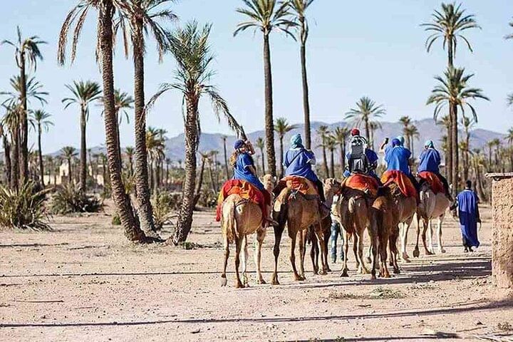 Ride through the Palmeraie oasis, surrounded by palm groves and traditional Berber villages. With safety and comfort as priorities, the tour includes helmets, gentle, well-cared-for camels, and expert local guides who share stories and cultural insights along the way.