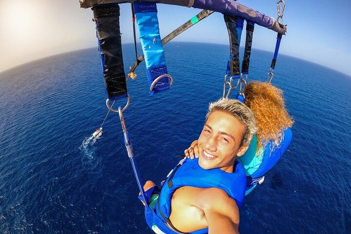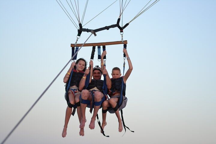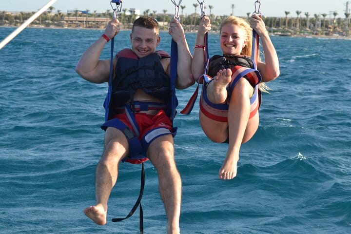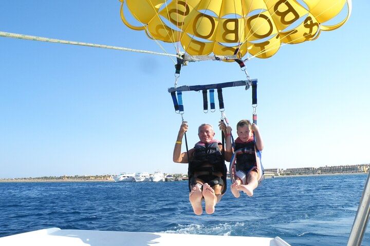 Get ready for an unforgettable parasailing adventure in Sharm El Sheikh, complete with convenient transportation to and from the launch site ( if option selected ). Enjoy a smooth and comfortable ride to your parasailing destination, where you'll receive a full briefing and safety instructions before taking flight. As you soar high above the Red Sea, take in panoramic views of Sharm El Sheikh’s stunning coastline and crystal-clear waters. Whether it’s your first time or you’re an experienced adventurer, this exciting experience offers a unique perspective of the city. Once you land, sit back and relax as you're safely transported back to your hotel. With professional instructors and top-notch safety measures, this parasailing adventure is both thrilling and worry-free. Capture breathtaking moments as you glide through the sky, making memories that will last a lifetime.