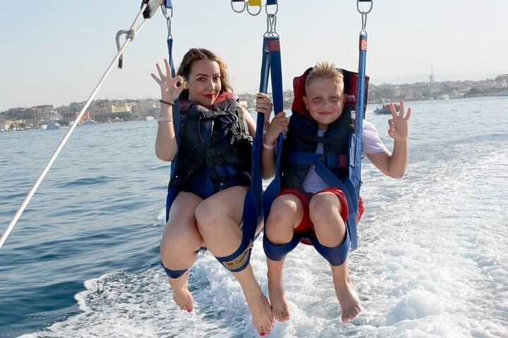 What makes this parasailing adventure in Hurghada truly unforgettable? It's the incredible feeling of soaring up to 50 meters above the Red Sea, where crystal-clear waters and panoramic views stretch as far as the eye can see. It’s not just a ride—it’s a moment of freedom, thrill, and tranquility all rolled into one.