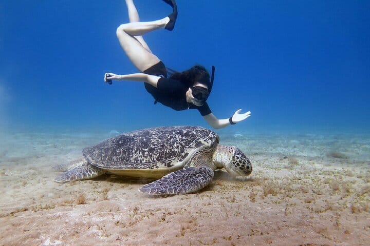 Experience the magic of Abu Dabbab Beach. Dive into a vibrant underwater paradise, where you’ll have the chance to swim near graceful turtles among stunning coral reefs. This adventure includes easy transfers and a tasty lunch, ensuring your day is both d