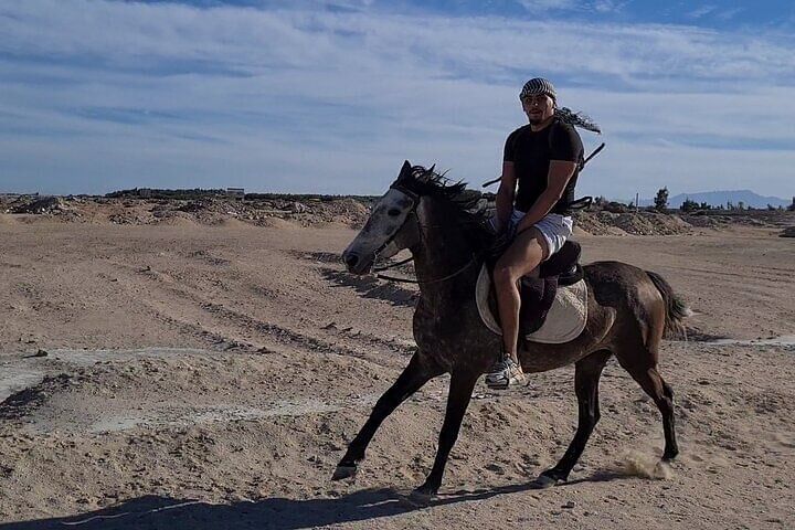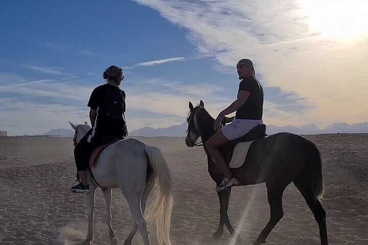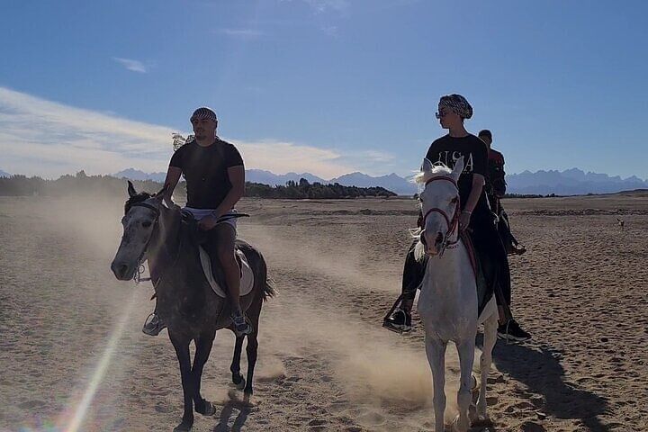 Set off on an unforgettable adventure as you begin your day with an adrenaline-fueled ride through the desert's rugged terrain. Navigate sweeping sand dunes and rocky trails while taking in breathtaking views of the Sinai Peninsula. After the thrill of the ride, unwind with a tranquil one-hour horseback journey, guided by experienced instructors, as you explore the serene desert and coastal landscapes at a relaxed pace.