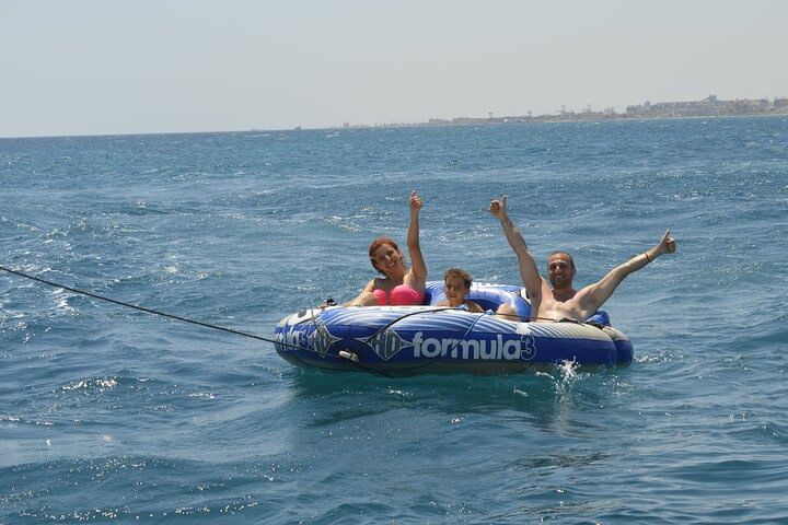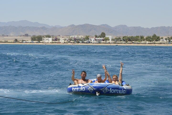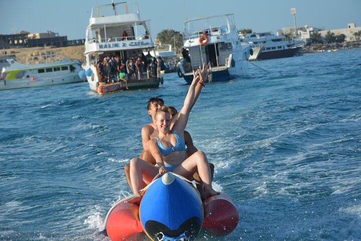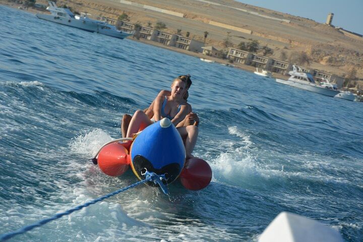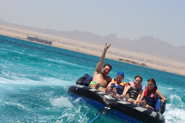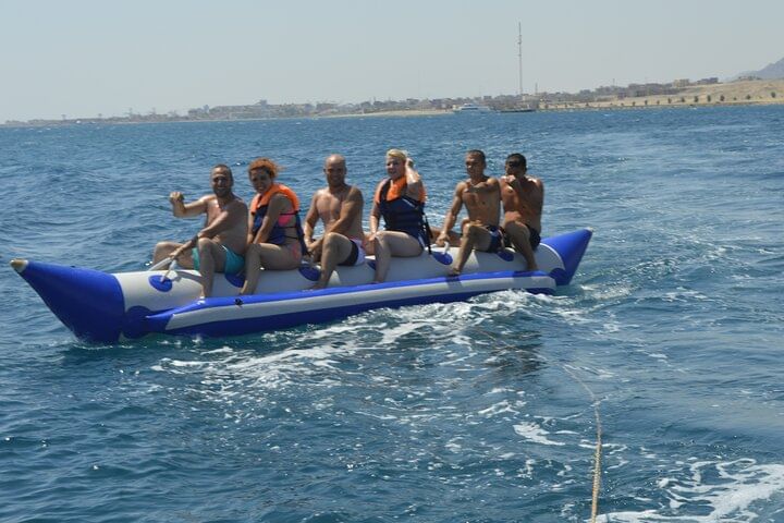 Your adventure starts with a convenient pick-up from your hotel in a private, air-conditioned vehicle. Upon reaching the beach, jump right into the action with a banana boat ride. Hold on tight as you're pulled across the shimmering waters of the Red Sea, bouncing over waves and sharing laughs with friends or family.