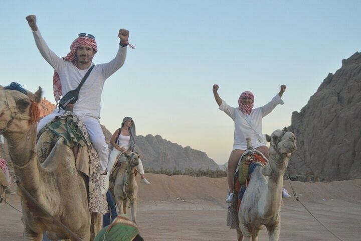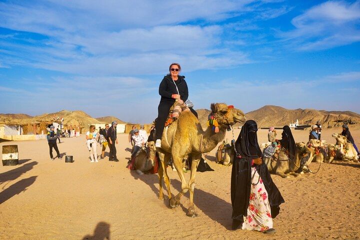 Enjoy a smooth hotel pick-up and drop-off in an air-conditioned vehicle. Then, embark on a thrilling safari jeep ride to a traditional Bedouin village. Experience the desert from a camel’s back as you explore the village and its surroundings.