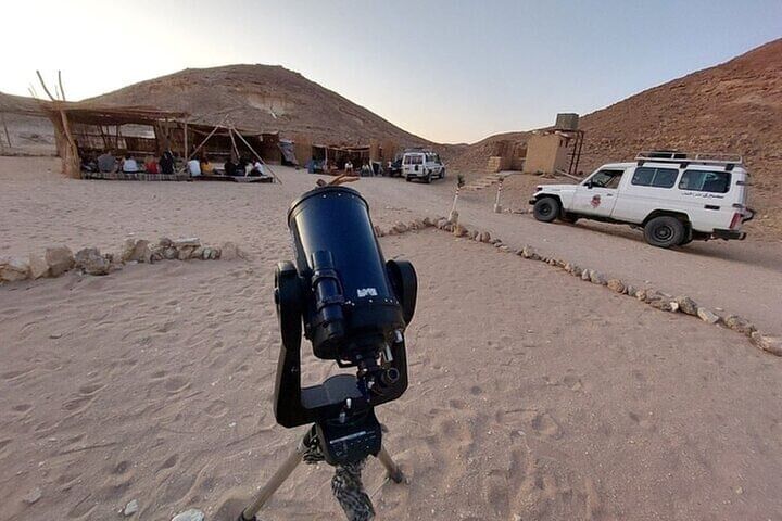 What makes this Hurghada desert safari truly special is its unique mix of adventure, culture, and stargazing—all in one unforgettable evening. Unlike standard tours, this journey takes you deep into the desert, far from city lights, where the stars shine brighter than ever. Kick off your adventure with a thrilling Jeep ride and a camel trek across golden dunes. Then, dive into authentic Bedouin life: try your hand at baking traditional bread, explore handcrafted goods, and experience desert hospitality firsthand. Watch a stunning sunset from a panoramic viewpoint, then relax in a romantic, candlelit Bedouin tent and enjoy a delicious BBQ dinner under the stars. The highlight? A magical stargazing session led by a professional astronomer, offering insight into the cosmos above. This isn't just a tour—it's a rare opportunity to connect with nature, culture, and the universe in one breathtaking experience.