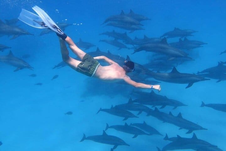 Set against the breathtaking scenery of the Red Sea, this semi-private speedboat adventure whisks you from Hurghada to the famous Dolphin House—one of the best locations to swim alongside these incredible marine mammals. Enjoy the warm sun, crystal-clear waters, and vibrant coral reefs, turning your trip into an unforgettable, immersive experience with nature.