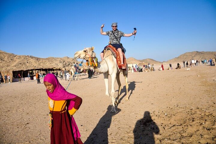 Immerse yourself in the desert’s magic with the Super Safari trip in Marsa Alam. Begin with an exciting Jeep safari across the dramatic desert landscape, then witness a breathtaking sunset that paints the sky with vibrant colors. Savor a delicious dinner under the stars, where you’ll enjoy local specialties in an unforgettable desert setting. The night continues with a peaceful camel ride, followed by an entertaining cultural show with traditional music and dance performances.
