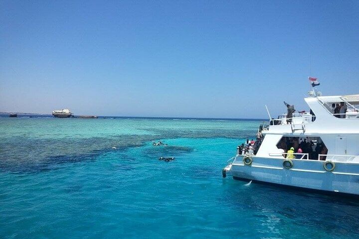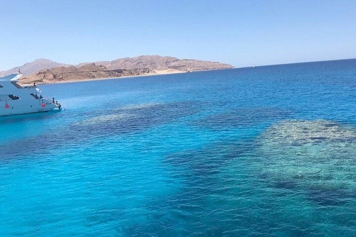 Enjoy an exciting full-day adventure with the Tiran Island Snorkeling Sea Trip from Sharm El Sheikh, including a 15-minute introductory dive. Enjoy a scenic cruise to Tiran Island, renowned for its vibrant coral reefs and rich marine life, where you'll spend the day snorkeling in its crystal-clear waters. For beginners, a brief, guided dive is offered to help you explore the underwater world. Take time to unwind on the boat, enjoy stunning sea views, and immerse yourself in a day of aquatic exploration and excitement.